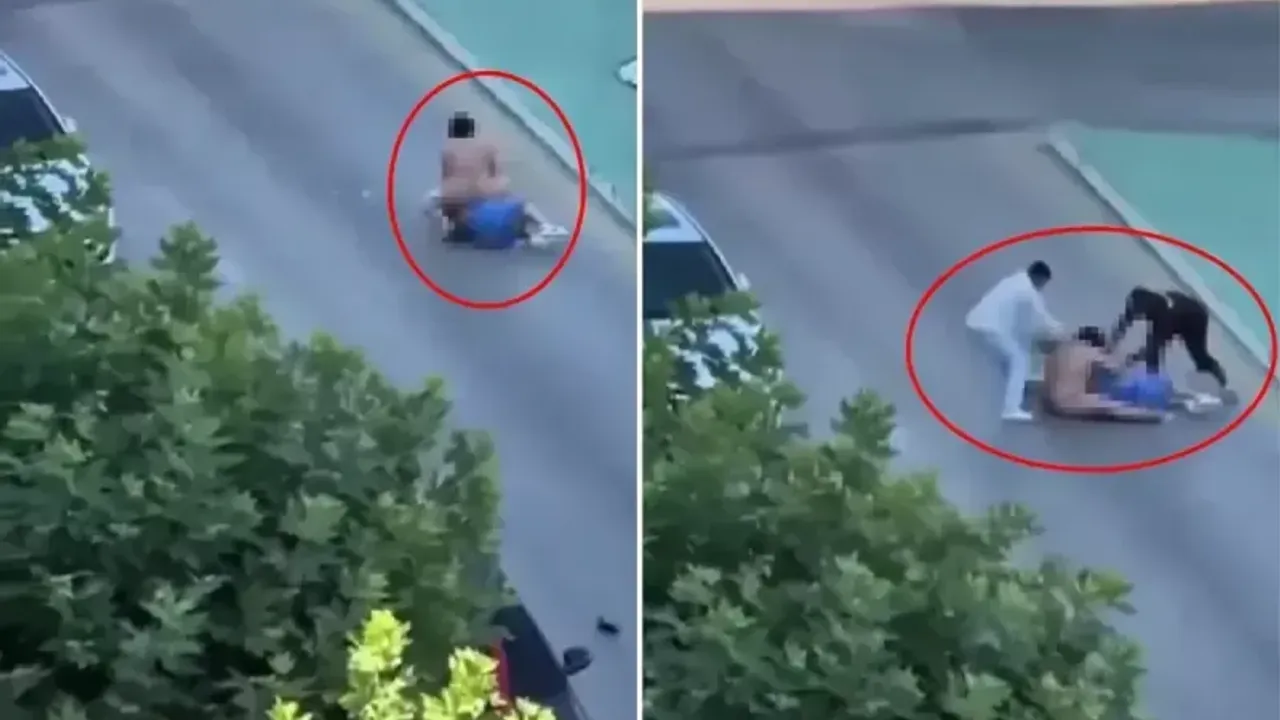 Yaşananlar, çevrede bulunan vatandaşlar tarafından cep telefonu kamerasıyla saniye saniye kaydedildi. Görüntülerde, çıplak kadının yerdeki kadının üzerine oturduğu, çevredekilerin ise müdahalede bulunduğu anlar net şekilde yer aldı.