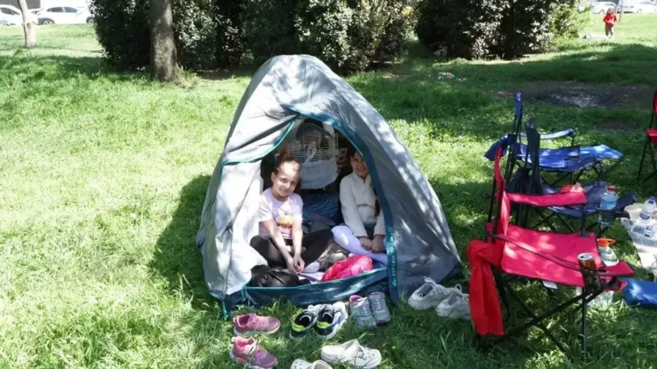 Millet bahçesinde ailesi ile birlikte çadır kuran 3 çocuk babası Ahmet Akdo, "Çadır kurduk, gece 23.00-00.00'a kadar burada olacağız. Sanayide çalışıyorum ve deprem çok şiddetli şekilde hissettim. 3 çocuğum var mecbur bu akşam buradayız. Buradakiler ne yapıyorsa onlara göre hareket edeceğiz" dedi.