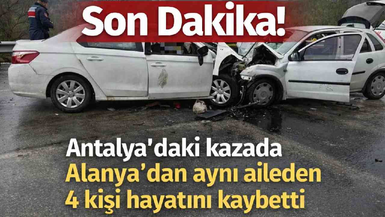 Antalya–Isparta kara yolunda meydana gelen trafik kazasında Alanya’da yaşayan aynı aileden 4 kişi yaşamını yitirdi. Kazada yaralanan 2 çocuğun hastanedeki tedavisi sürüyor.