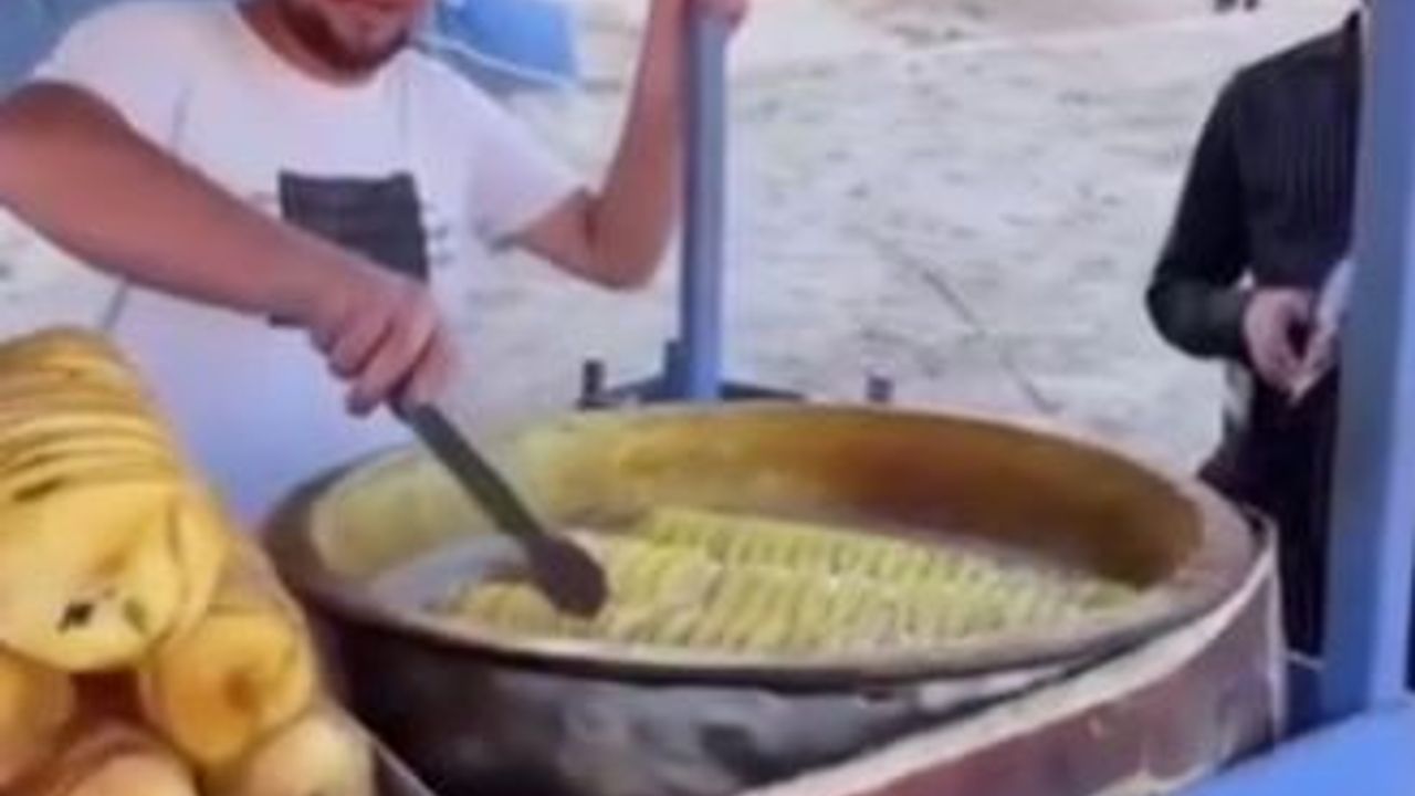 Görüntülerde, satıcının bir çubuk patatesi 200 TL karşılığında turistlere sattığı anlar dikkat çekti.