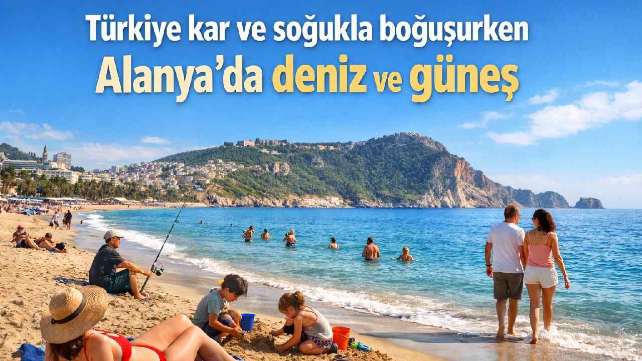 Türkiye genelinde birçok ilde buzlanma, ulaşım aksaması ve karla mücadele çalışmaları sürerken, Alanya sahilinde görülen bu manzara farklı bir tablo oluşturdu. Montla gezen de vardı, denize giren de. Aynı karede iki mevsim gibi.
