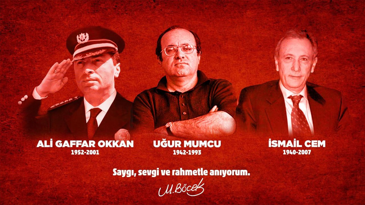 "Gerçeğin peşinden yılmadan yürüyen Gazeteci Uğur Mumcu’yu, teröre karşı kararlı duruşu ve vatan sevgisiyle hafızalarda yer edinen Diyarbakır Emniyet Müdürü Ali Gaffar Okkan’ı ve ülkemize Dışişleri ve Kültür Bakanı olarak önemli hizmetler sunan İsmail Cem’i vefatlarının yıl dönümünde saygı, rahmet ve minnetle anıyorum."