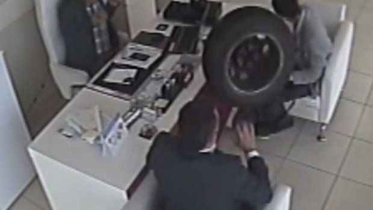 Adana'da eczanede oturan adamın kafasına tekerlek çarptı