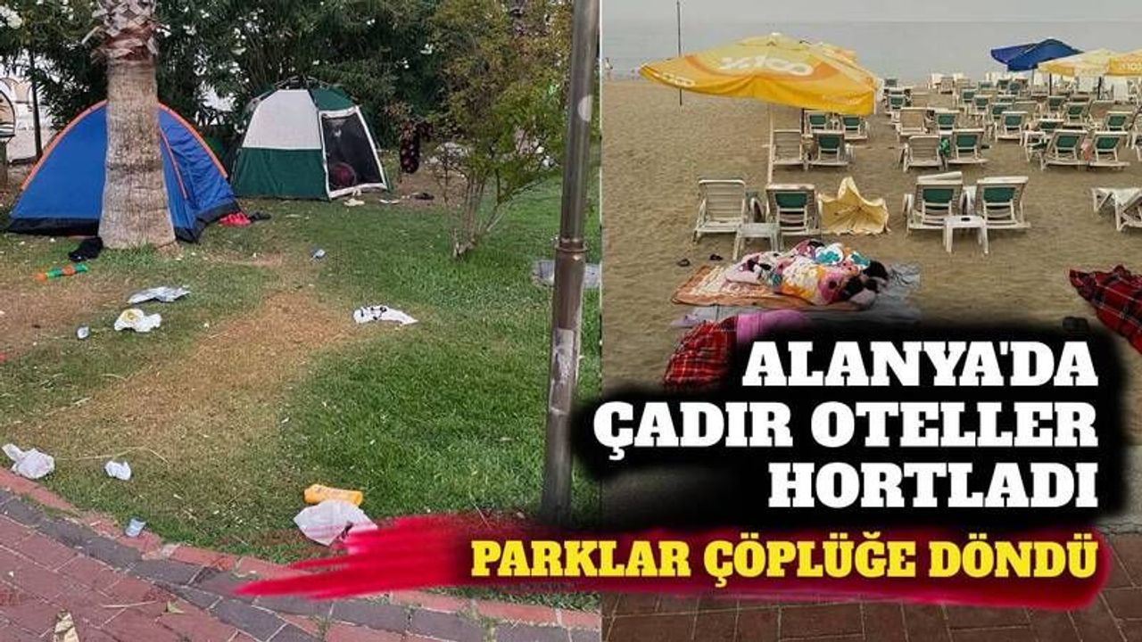 Alanya Damlataş 100. Yıl Parkı'nda yaklaşık 30 kişilik grubun kurduğu çadırlar, turistik bölgede hijyen ve güvenlik sorununa yol açtı