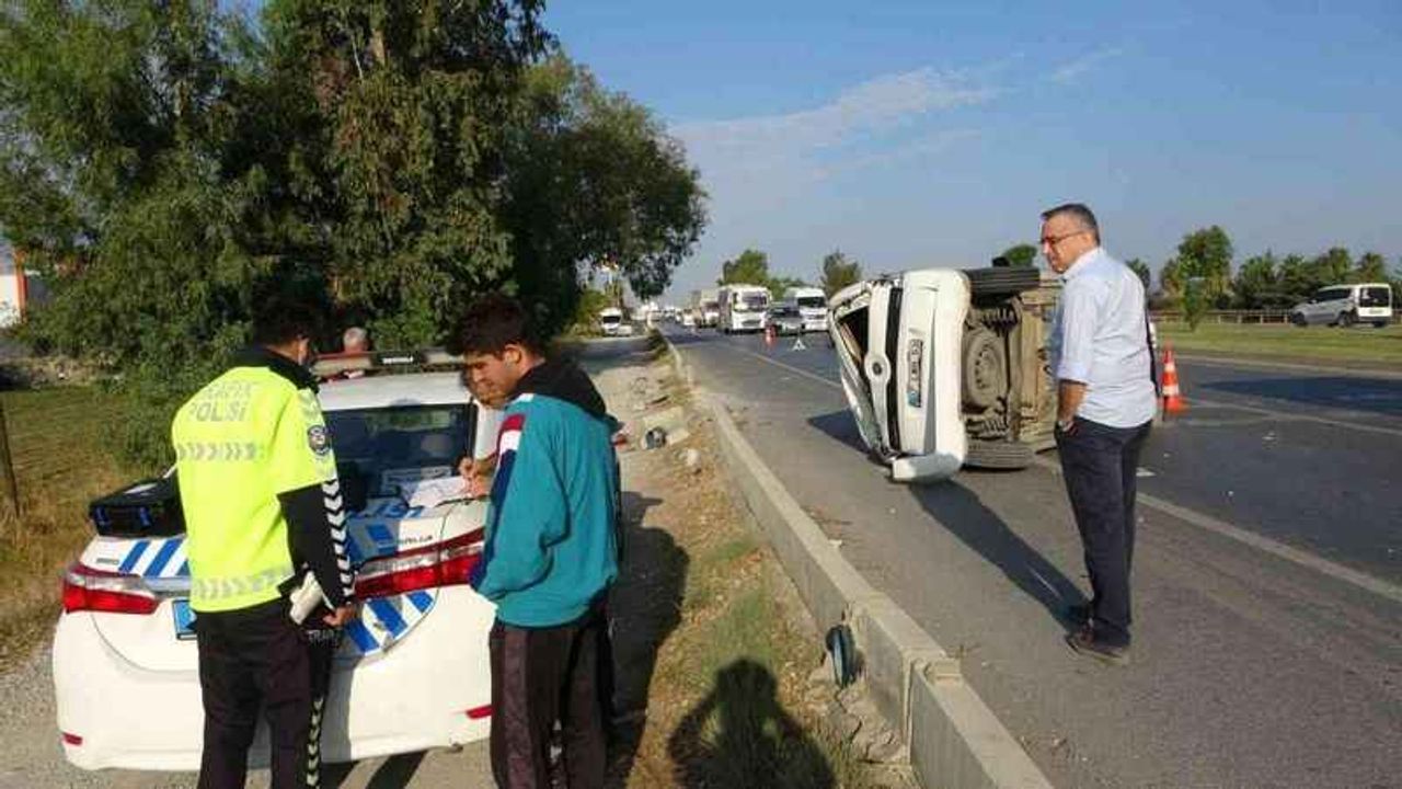 Alanya-Manavgat D-400 karayolunda ilçesi Ulualan mevki’inde bordüre çarptıktan sonra takla atan ticari araç sürücüsü, şans eseri kazayı burnu bile kanamadan atlattı.