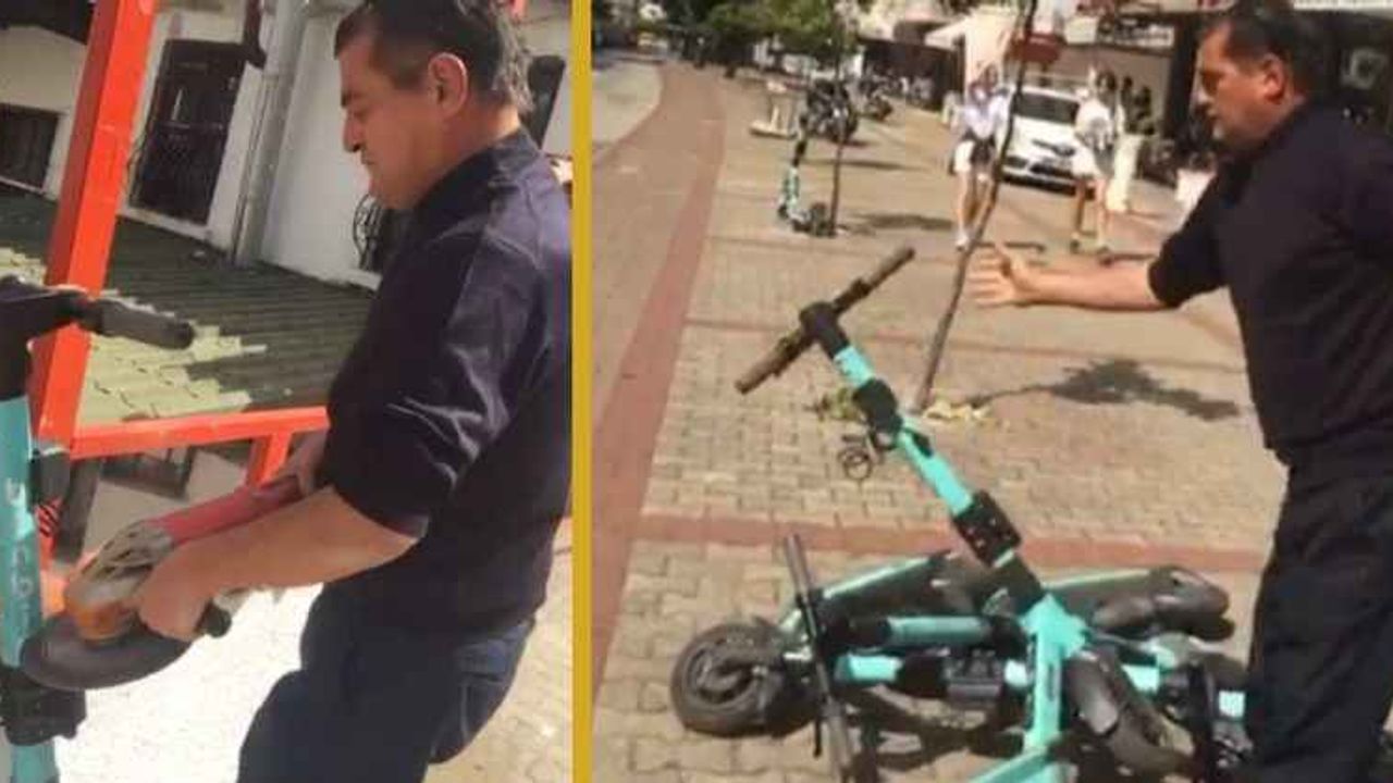 Alanya’da bir işletme sahibi restoranının önüne ‘BinBin’ isimli scooterın yerleştirildiğini görünce çılgına döndü. İşletmeci eline aldığı spiral makinesiyle ‘BinBin’leri tek tek kesti