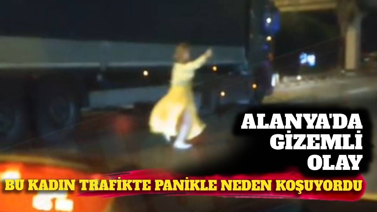 Alanya Konaklı Mahallesi D-400 Karayolu üzerinde panik halde otoyolun ortasında koşup çevredeki sürücülere dur işareti yapan kadın merak uyandırdı.