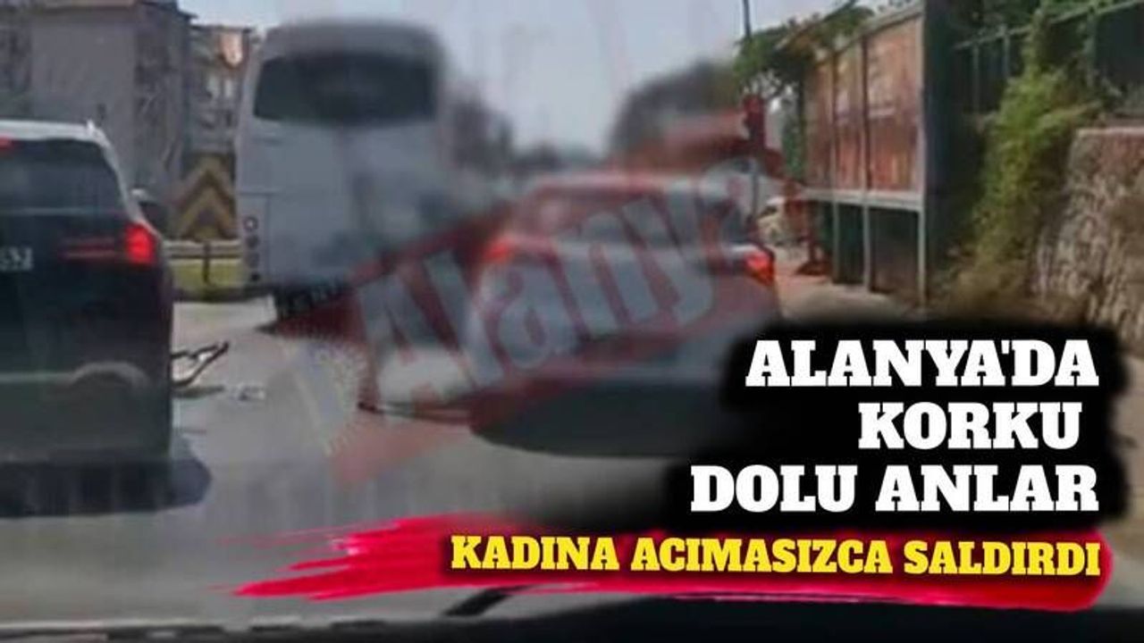 Alanya'da korku dolu anlar: Trafiğin ortasında kadını acımasızca darbetti