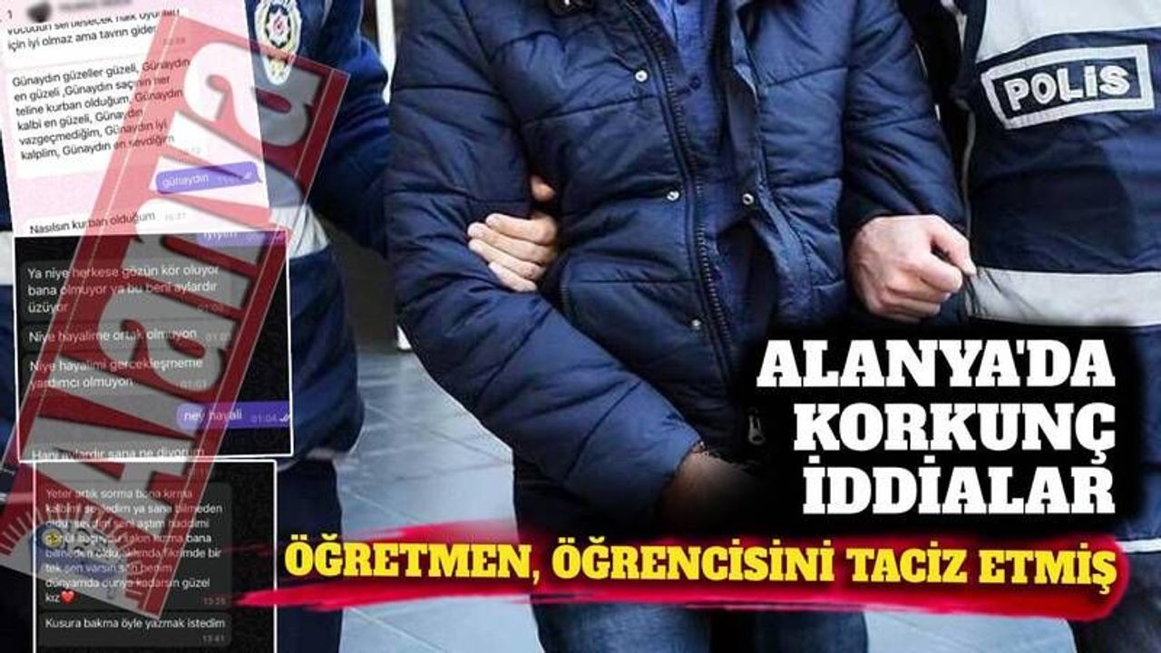 Alanya’da bir öğretmenin küçük yaştaki öğrencisine aşk mesajları gönderdiği ve tacizde bulunduğu iddia edildi. Ailenin şikayeti sonrası soruşturma başlatıldı.