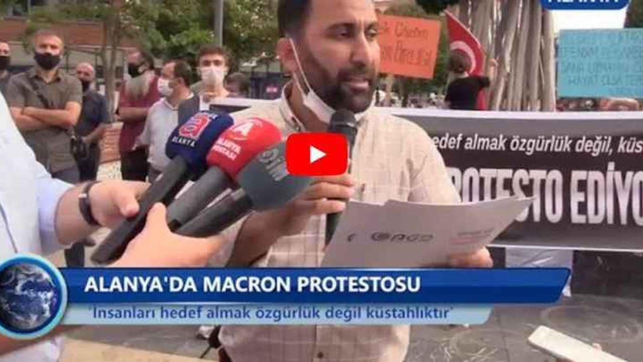 Macron’un açıklamaları ve Fransa, Anadolu Gençlik Derneği Alanya Temsilciliği tarafından protesto edildi. Alanya Hacet Meydanı'nda toplanan üyeler adına açıklama yapan AGD Alanya Şubesi Başkanı Sıddık Uyar, "İnsanların inançlarını hedef almak özgürlük değil küstahlıktır" dedi.