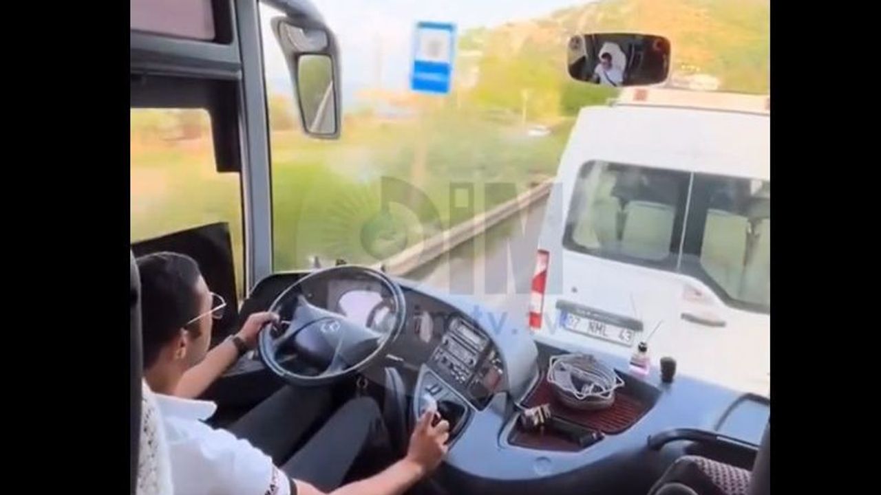 Alanya - Antalya yolu üzerinde şehirlerarası bir otobüs şoförü yolculara korku dolu anlar yaşattı