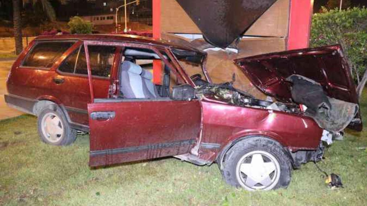 Alanya'da sürücüsünün direksiyon hakimiyetini kaybettiği otomobil yoldan çıktı. Ağaç devirip ardından adliye binasına ait totem tabelaya çarpan otomobilde sürücü sıkıştı.