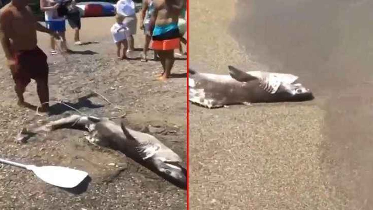 Kemer ilçesinde sabah saatlerinde kano ile denize açılan vatandaşlar, su üzerinde 1,5 metre uzunluğunda köpek balığı gördüler. İlk önce tedirgin olan vatandaşlar, daha sonra ölü köpek balığını ipe bağlayarak karaya...