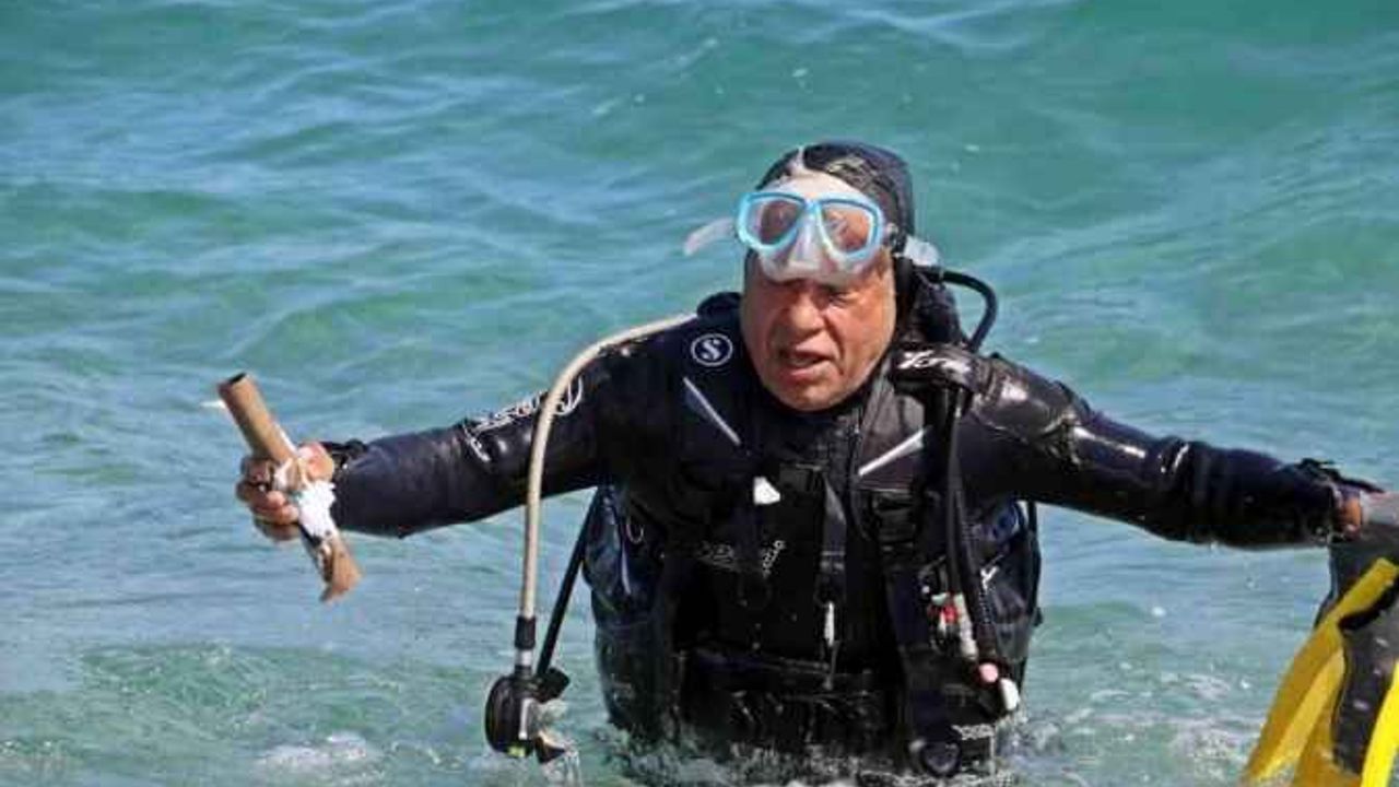 Antalya’da sualtı araştırmalarıyla tanınmış profesör Mehmet Gökoğlu, öğrencileriyle birlikte dünyaca ünlü sahilde denize dalarak çöp topladı. Denizden çıkan pet şişe, kitap, demir, cam kırıklarının yanı sıra iç çamaşırı takımı ve Hıdırellez’de vatandaşların attığı ilginç dilek mesajları yer aldı.