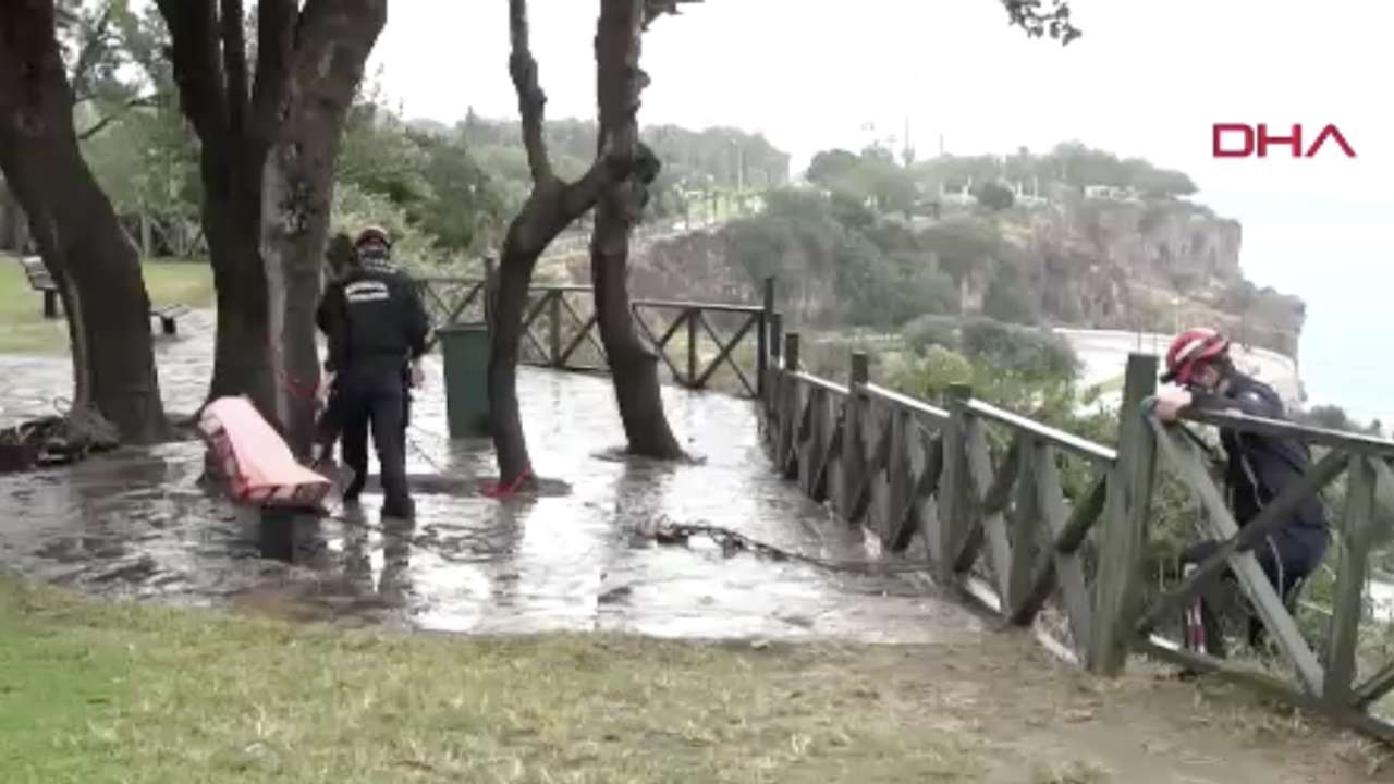 Antalya'da falezlerde mahsur kaldı; kurtarılınca gazetecilere saldırdı