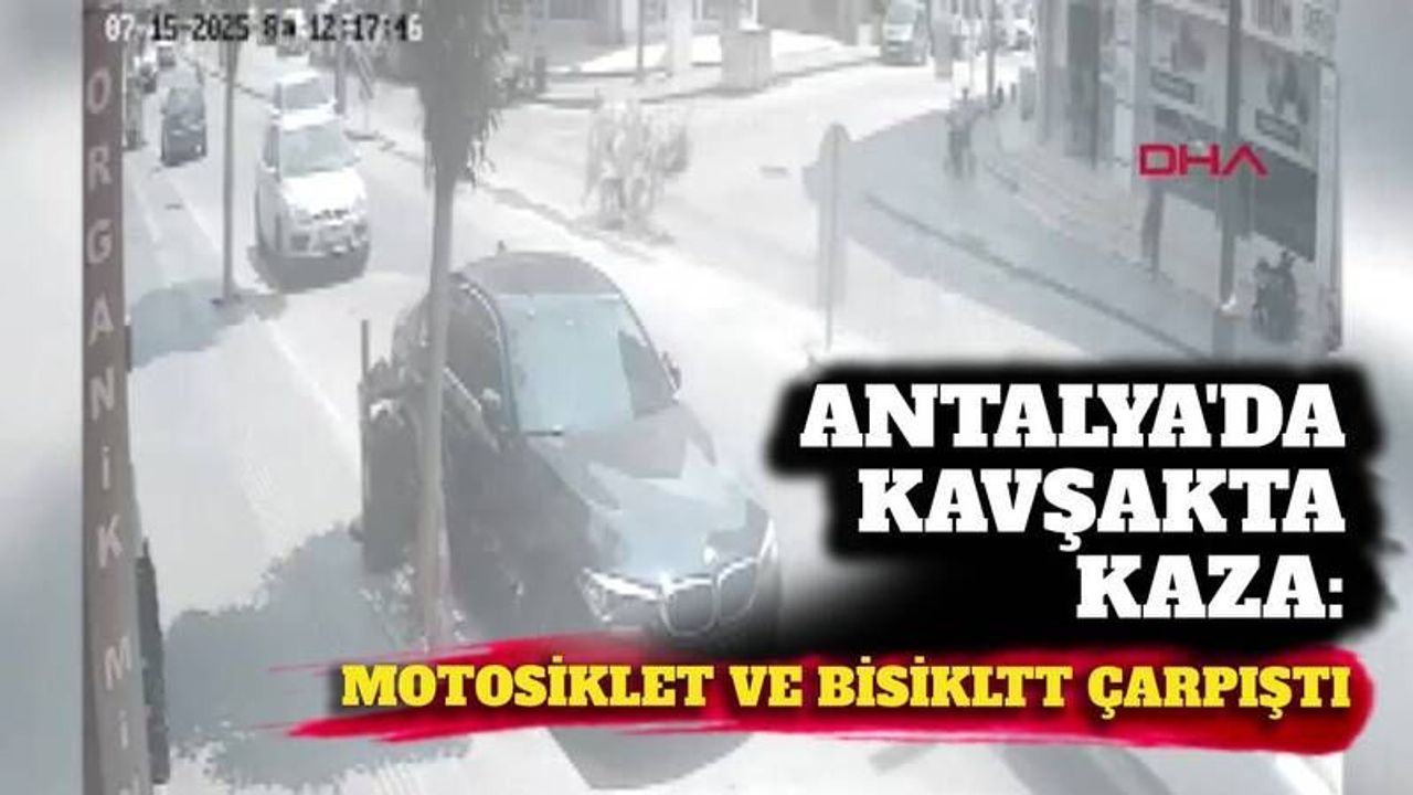 Antalya'da kavşakta motosiklet ve bisiklet çarpıştı: İşte kaza anı