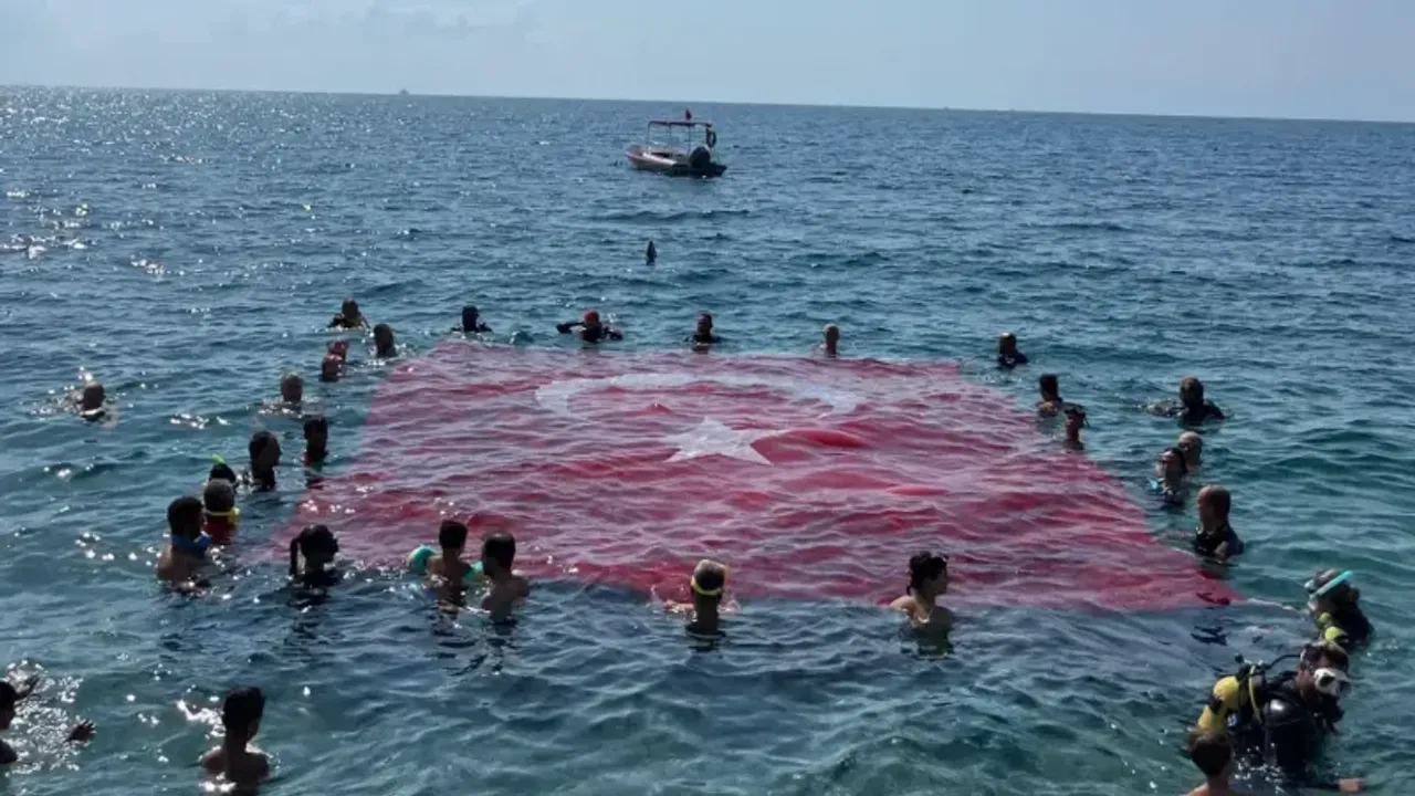 Antalya'da 15'i dalgıç 100 kişilik grup, 30 Ağustos Zafer Bayramı'nı deniz altında Türk bayrağı açarak kutladı.