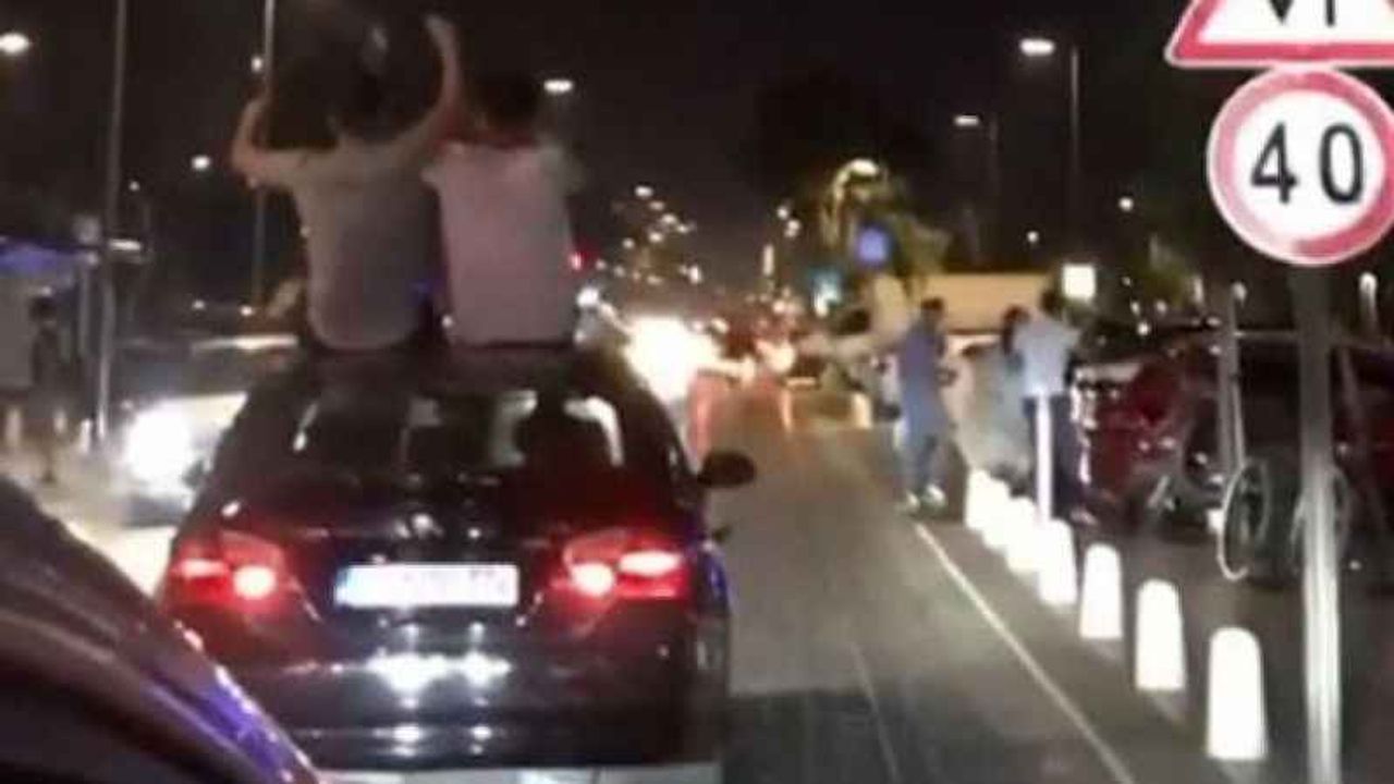 Olay, Antalya’da gece saatlerinde Konyaaltı ilçesi Akdeniz Bulvarı üzerinde yaşandı. Cep telefonu kamerasına yansıyan görüntülerde seyir halinde bulunan bir otomobilin sunrooffundan iki gencin çıktığı ve aracın tavanına oturduğu görüldü....