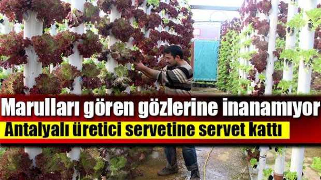 Antalyalı üretici, alternatif ürün yetiştirmek ve toprak kirliliğini önlemek amacıyla kurduğu dikey topraksız serasından yılda 9 dönem marul alarak servetine servet katıyor