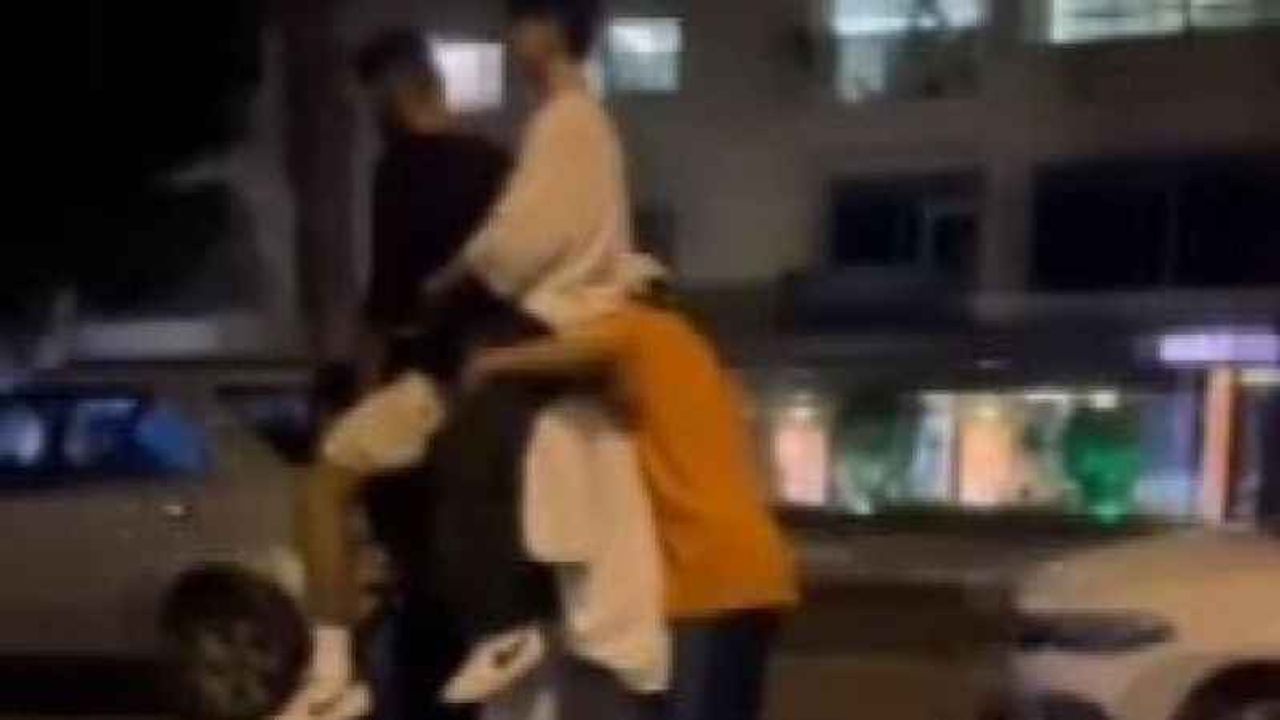 Farklı noktalarında elektrikli scootera aynı anda binen 6 çocuk, bununla da yetinmeyerek yokuş aşağı son hızla ilerledi. O anlar trafikte ilerleyen başka sürücüler tarafından cep telefonuyla saniye saniye kayda alındı.