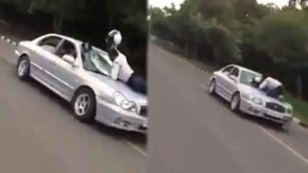 Durdurmaya çalıştığı araç gaza basınca ortaya bu görüntüler çıktı. Hindistan'da polis cep telefonuyla konuşan sürücünün aracını sağa çekmesini istedi. Uyarıya uymayan genç sürücü yoluna devam etmek isteyince polis aracın...