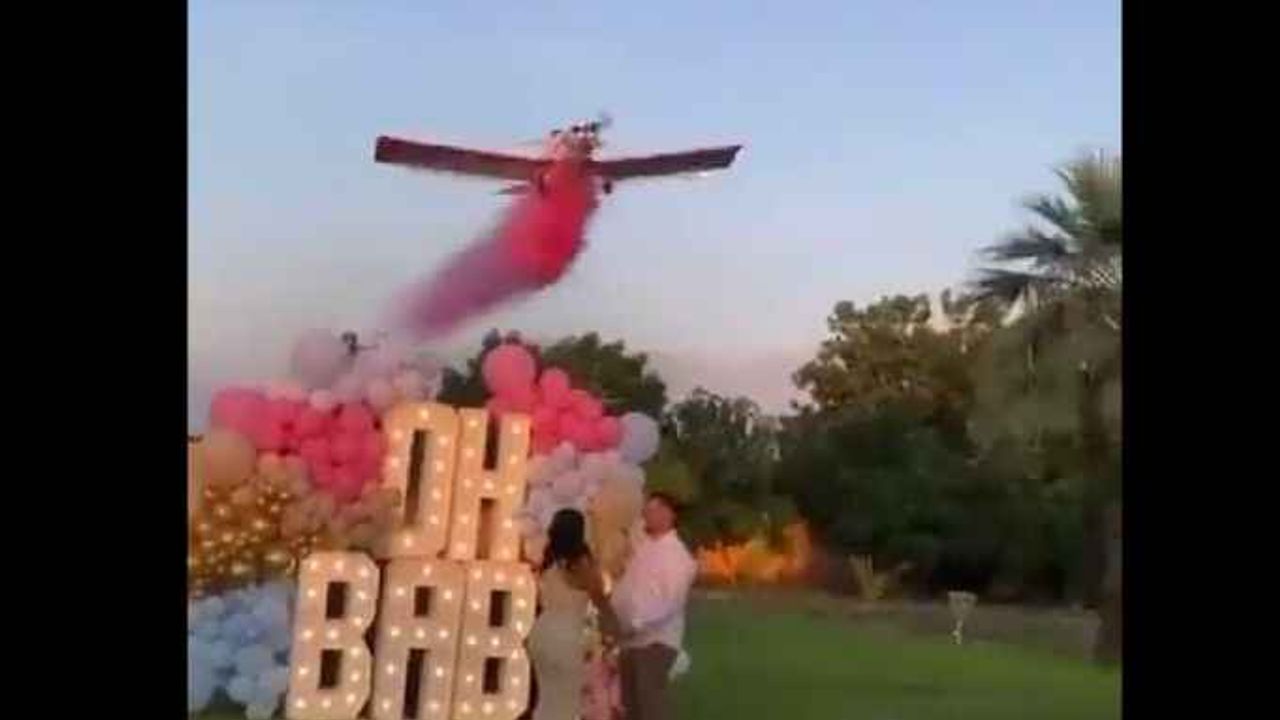 Piper PA-25 tipi uçak, çiftin üzerinden geçerken pembe tozu aşağıya bıraktı, bu da aileye bebeklerinin kız olduğunu gösterdi. Davetliler, sevinçle birbirlerini kucakladı, ancak uçağın düştüğünü fark etmedi.