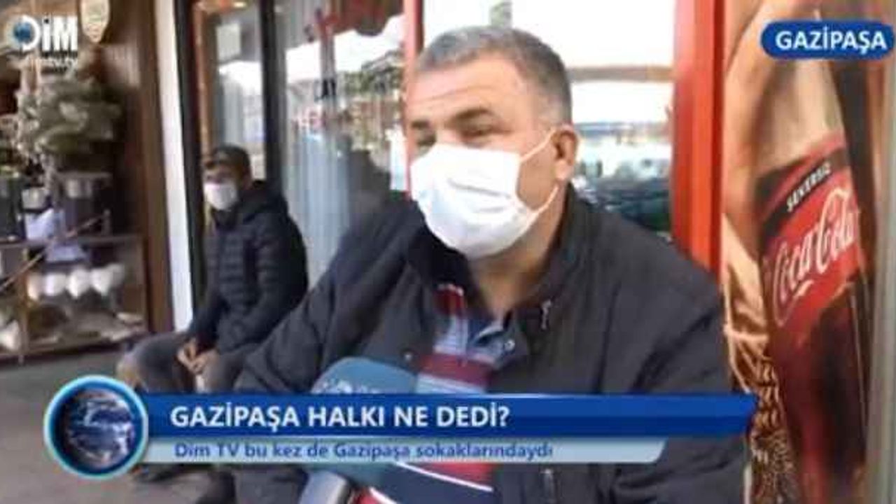 Bu kez de Gazipaşa sokaklarının nabzını tuttu. Vatandaşa mikrofonlarını uzatan Dim TV Gazipaşa halkının gündeme ilişkin yorumlarını aldı.