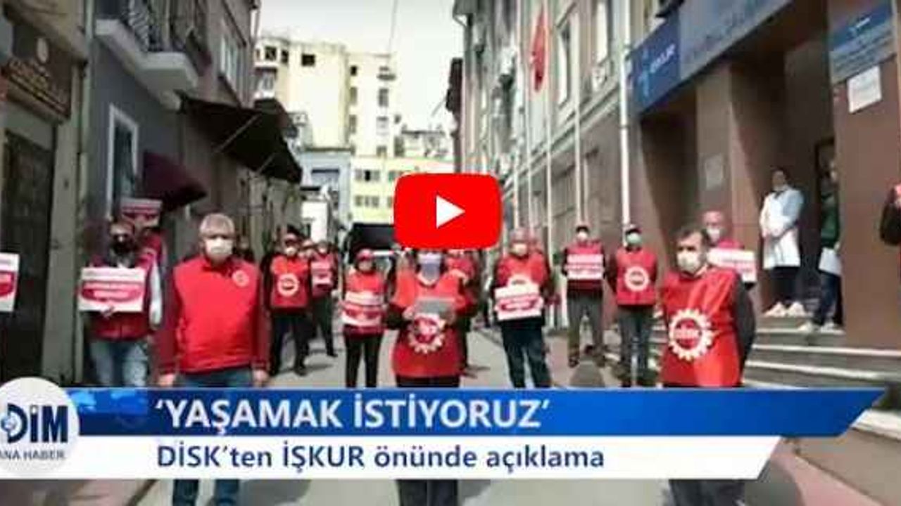 DİSK koronavirüs günlerinde koronavirüsün kol gezdiği şantiyelerde çalışmak zorunda bırakılan emekçiler için İŞKUR önünde bir basın açıklaması gerçekleştirdi. DİSK Genel Başkanı Arzu Çerkezoğlu emekçilerin yaşamak istediklerini vurguladı.