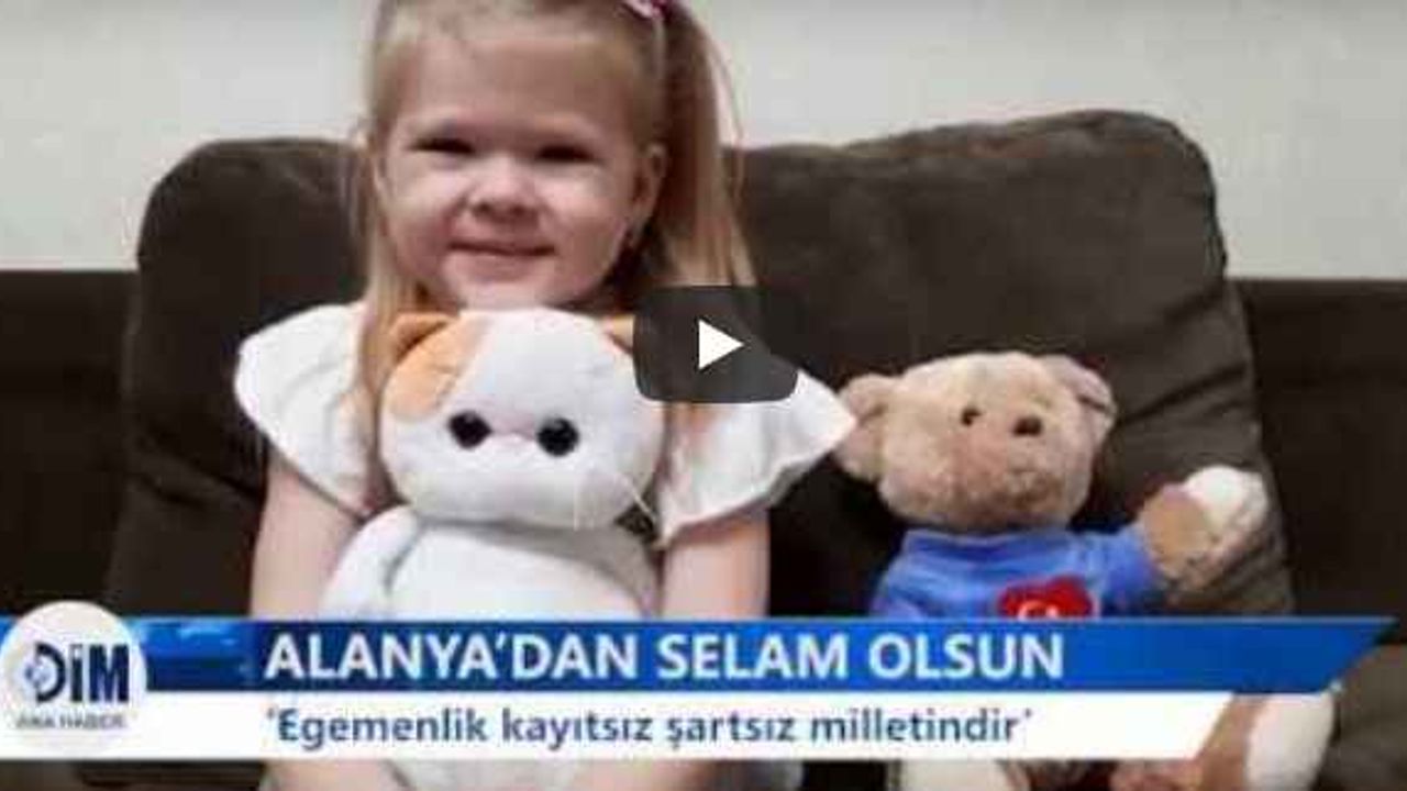 Alanya hayranı Rus minik Viktoria Bochneva da Alanya’dan aldığı oyuncağıyla bayram mesajını video çekerek aktardı. Alanya’ya selamlarını iletti.