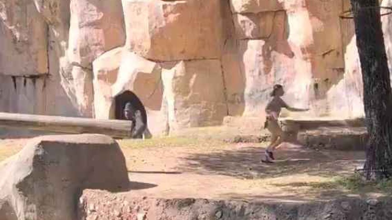 Teksas'taki Fort Worth Hayvanat Bahçesi'nde kendilerini beklenmedik bir şekilde bir gorille birlikte bir sergide bulan hayvan bakıcısının videosu viral oldu