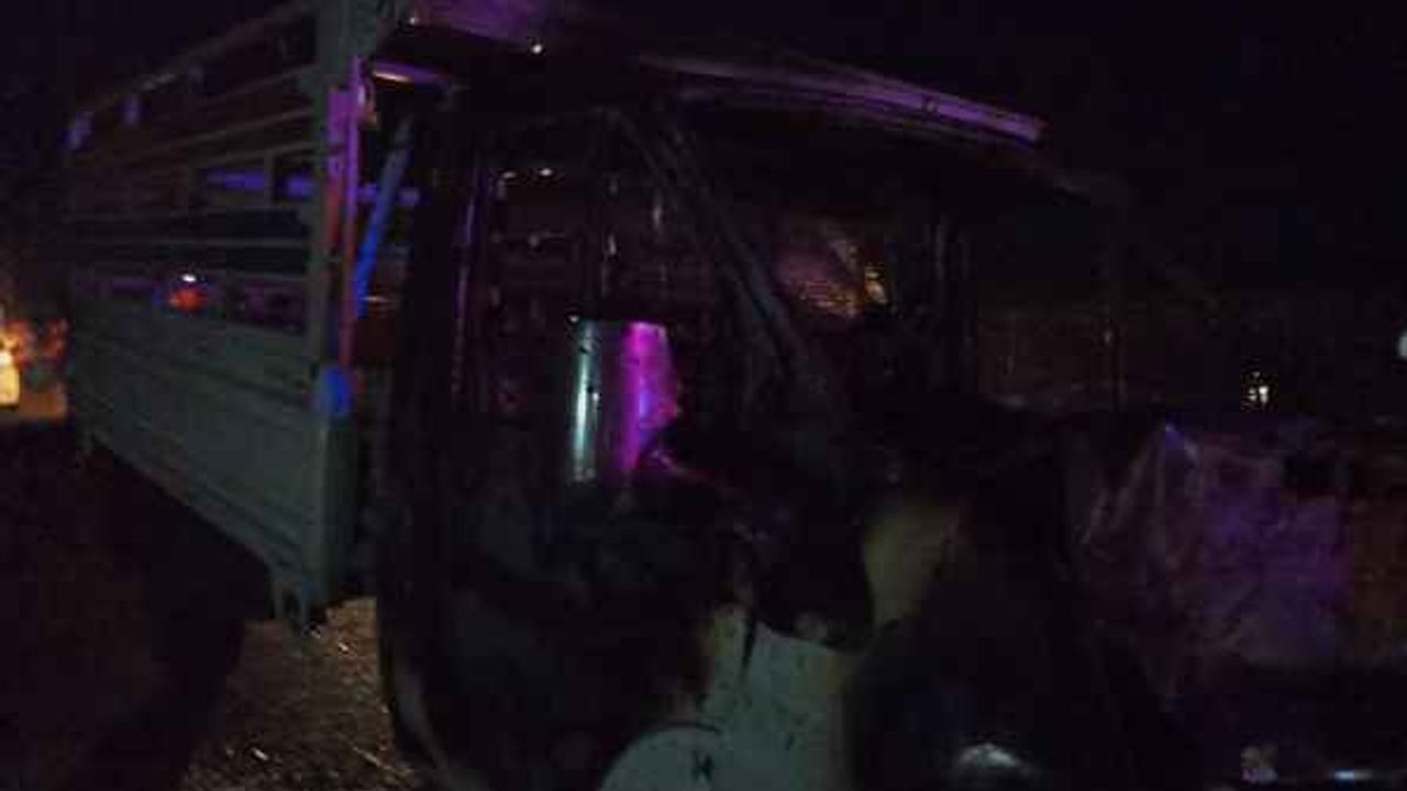 Hayvanlara çarpmamak için manevra yapan pikap şarampole yuvarlanıp alev aldı!
