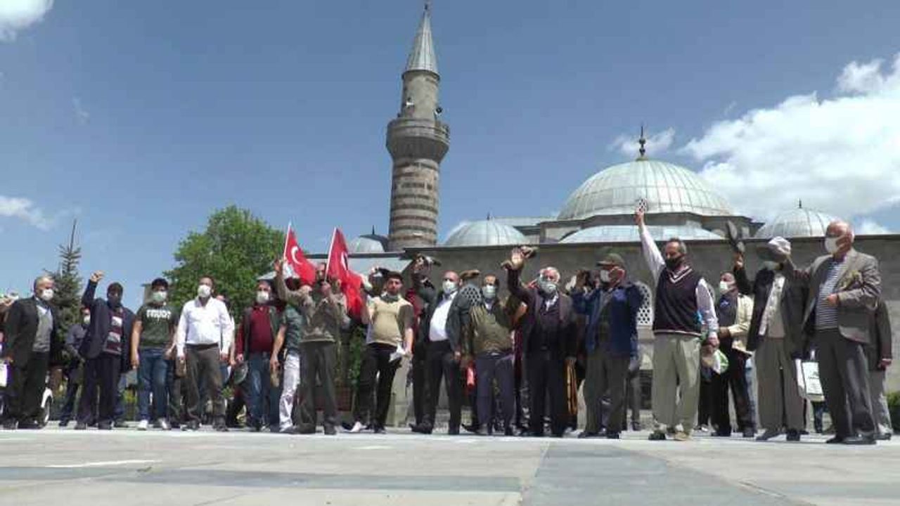 Erzurum’da cuma namazının ardından toplanan girişimci dernekler ayakkabılarını fırlatarak İsrail’in saldırılarına tepki gösterdi.