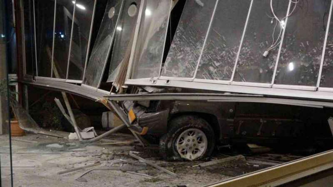Kontrolden çıkıp restorana giren araç alev aldı