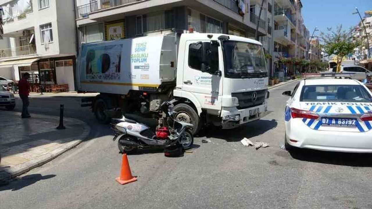 Manavgat'ta korkunç kaza! Motosiklet, belediyenin temizlik aracına çarptı: 1 yaralı