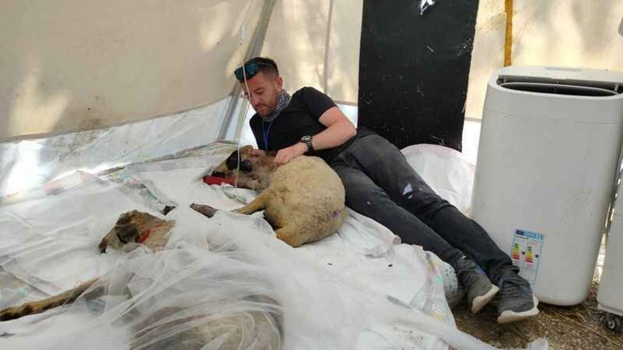 Manavgat'ta kurulan sahra hastanesinde veteriner hekim ve gönüllüler, orman yangınlarından kurtarılan yaralı hayvanlara klasik müzik dinleterek psikolojik tedavi uyguluyorlar