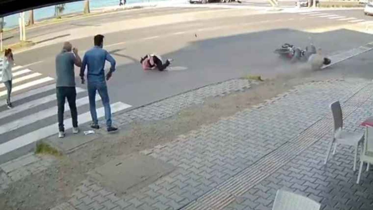 Motosikletin kadına çarptığı kaza kamerada: 2 yaralı
