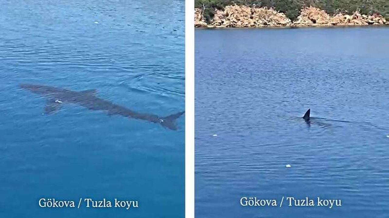Muğla'nın Gökova Körfezi'nde tekne gezintisine çıkan turistler Tuzla Koyu'nda devasa bir köpek balığı ile karşılaştı. İşte o anlar