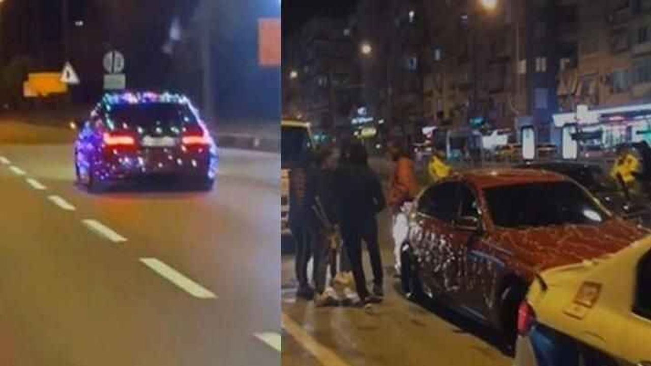 Antalya’da bir sürücü, lüks aracını ışıklarla süsleyerek trafiğe çıktı. Cep telefonu kameralarına yansıyan görüntülerde, disko topu gibi ışıl ışıl parlayan araç, polisin dikkatinden kaçmadı. Araç, polis ekipleri tarafından durdurulduğu sırada kayda giren araçtaki gençlerden biri, “Kapanışı yapıyoruz, olması gereken oldu” dedi.