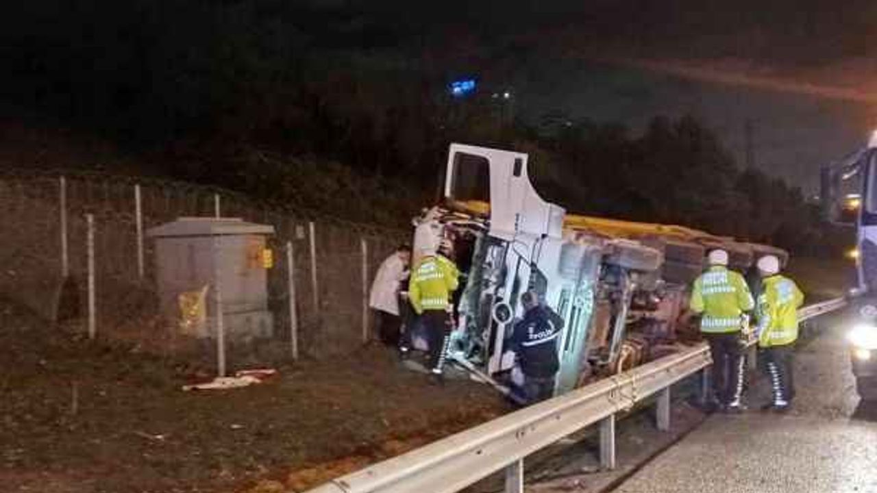 TEM Otoyolu’nda hafriyat kamyonu devrildi: 1 ölü, 1 yaralı