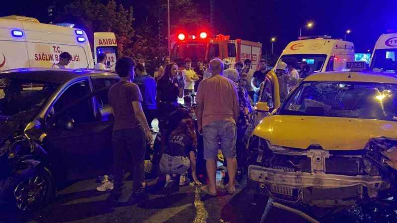 Beşiktaş Ulus’ta ters yöne giren otomobil, ticari taksiyle kafa kafaya çarpıştı. 3 aracın karıştığı kazada ortalık savaş alanına dönerken 7 kişi yaralandı.