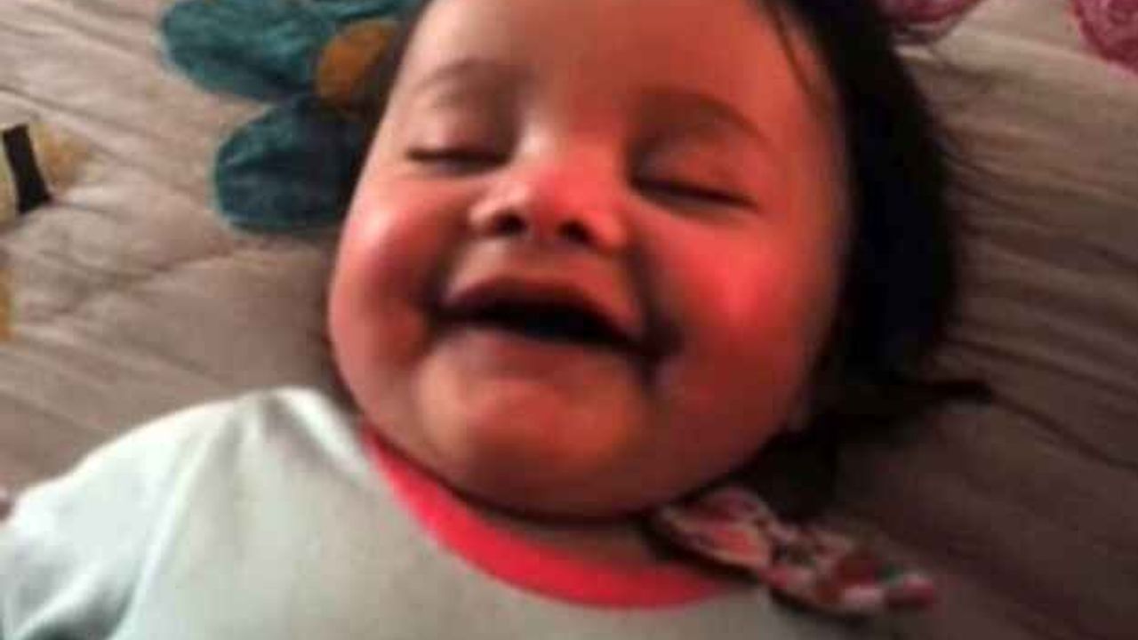 Hem uyuyor, hem de kahkaha atıyor. Adı Zoe. Annesi onu uyutmuş. Mışıl mışıl uykuda ama annesinin esprilerine de gülmeyi ihmal etmiyor. Bu görüntü de sosyal medyada tıklanma rekorları kırıyor.