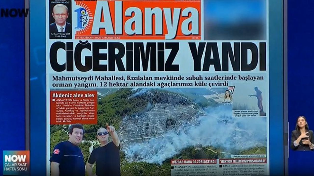 Yeni Alanya Gazetesi’nin bugünkü sayısında yer alan Gülser Yiğit imzalı ‘Ciğerimiz yandı’ isimli manşet haberi NOW TV ekranlarında ülke gündemine ulaştı