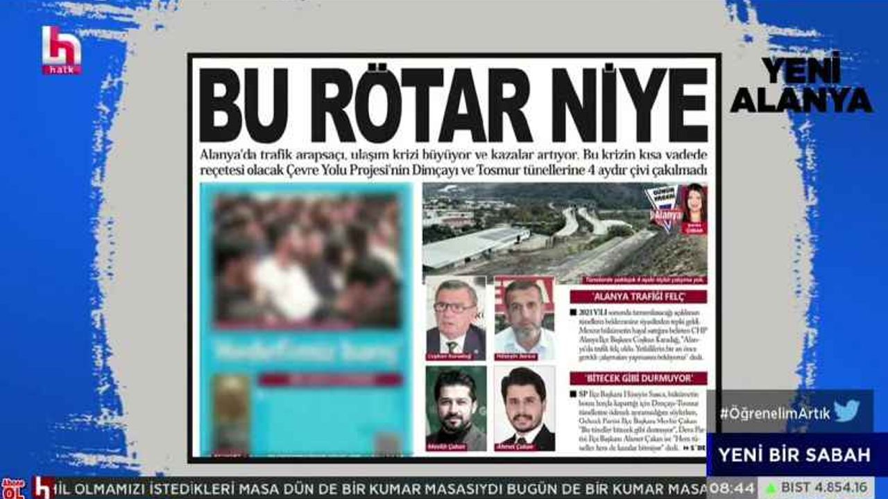 Yeni Alanya'nın bugünkü "Bu rötar niye" başlıklı manşeti ülke gündemine taşındı. Halk TV'de yayınlanan İsmail Küçükkaya ile Yeni Bir Sabah programında milyonlara duyurulan manşette Alanya'daki trafiğin arapsaçı olması ve ulaşım...