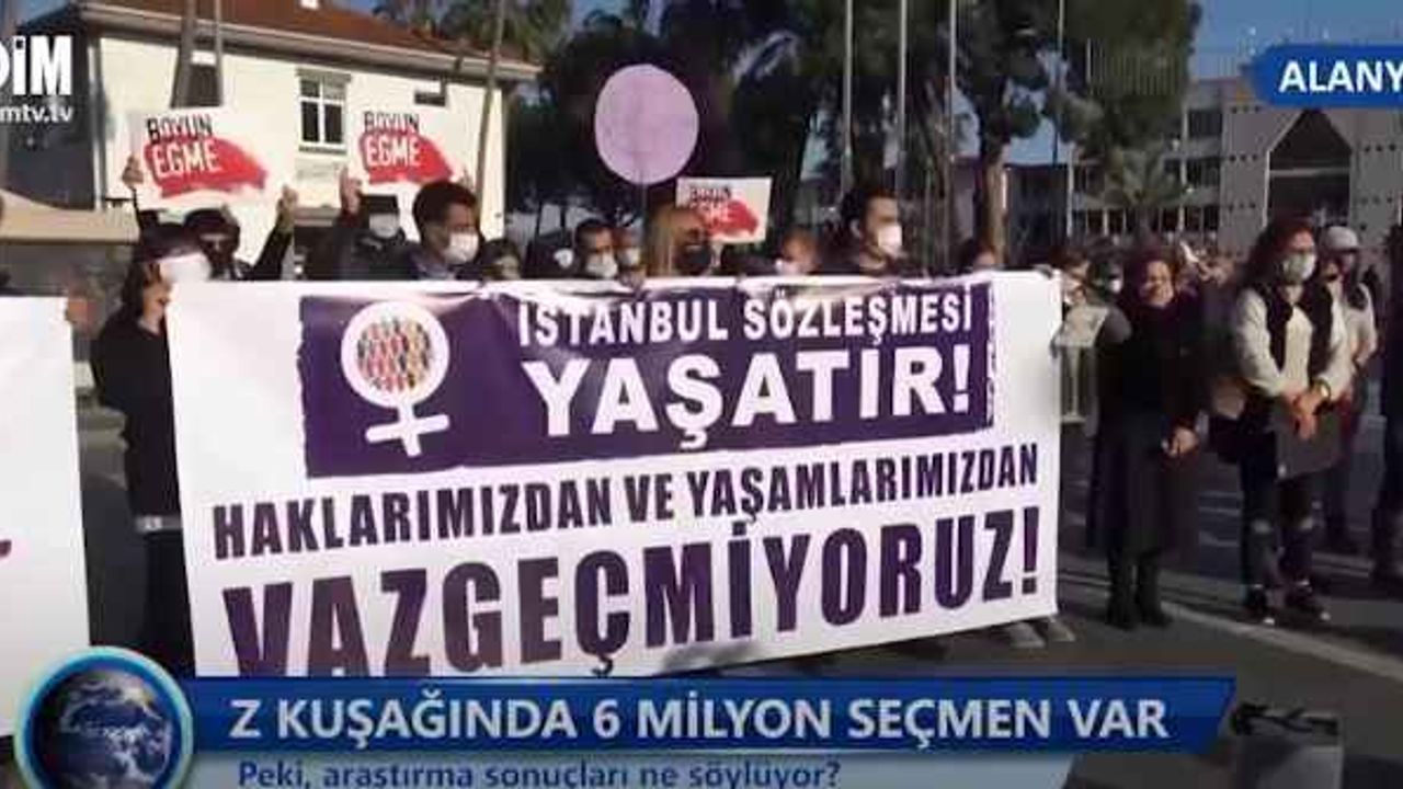 Z kuşağı kadınları geçtiğimiz gün Alanya’da sokağa inmişti. İstanbul Sözleşmesi’nin bir gece yarısı kararnamesiyle feshedilmesini protesto ettiler. Dim TV mikrofonlarına konuşan Z kuşağı kadınları, “Bunları unutmayacağız sandıkta görüşeceğiz” demişlerdi.
