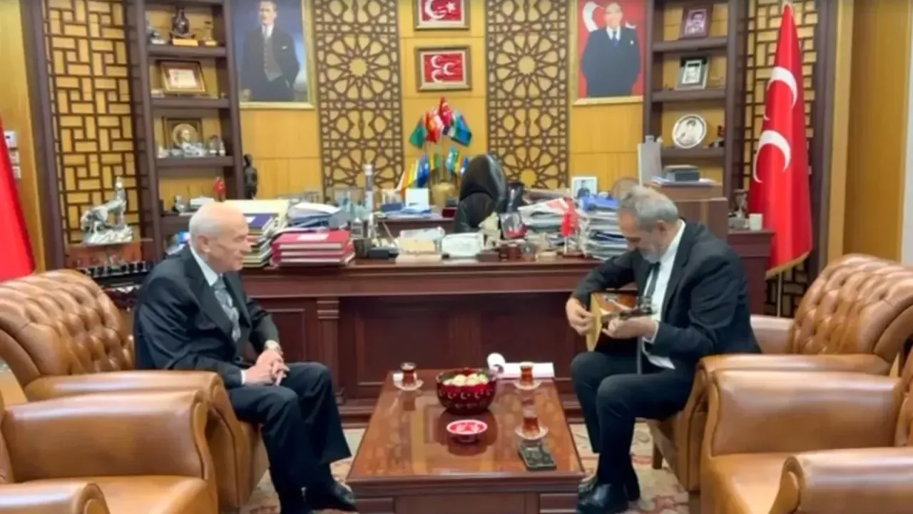 Sanatçı Yavuz Bingöl, MHP Genel Başkanı Devlet Bahçeli'yi ziyaret ederek, Nevşehir'in Hacıbektaş ilçesinde bağışladığı arsaya yaptırdığı cem ve kültür evi külliyesi nedeniyle teşekkür etti. Bingöl, Bahçeli'ye bağlama hediye etti.