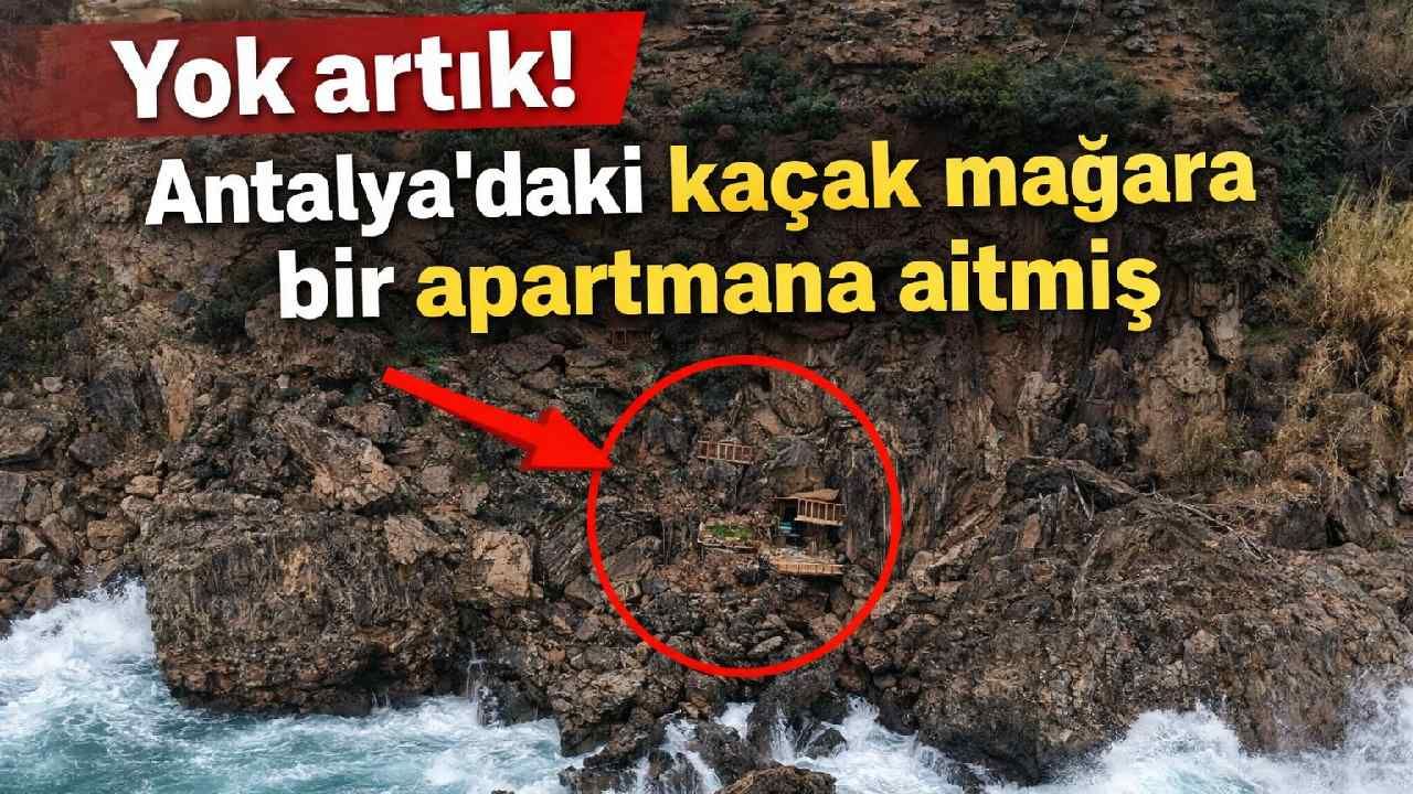 Antalya falezlerinde denizden görüntülenen betonarme kaçak mağaranın, Konyaaltı Caddesi üzerindeki bir apartmana ait olduğu ortaya çıktı. Valilik inceleme başlattı, yapı kullanıma kapatıldı.
